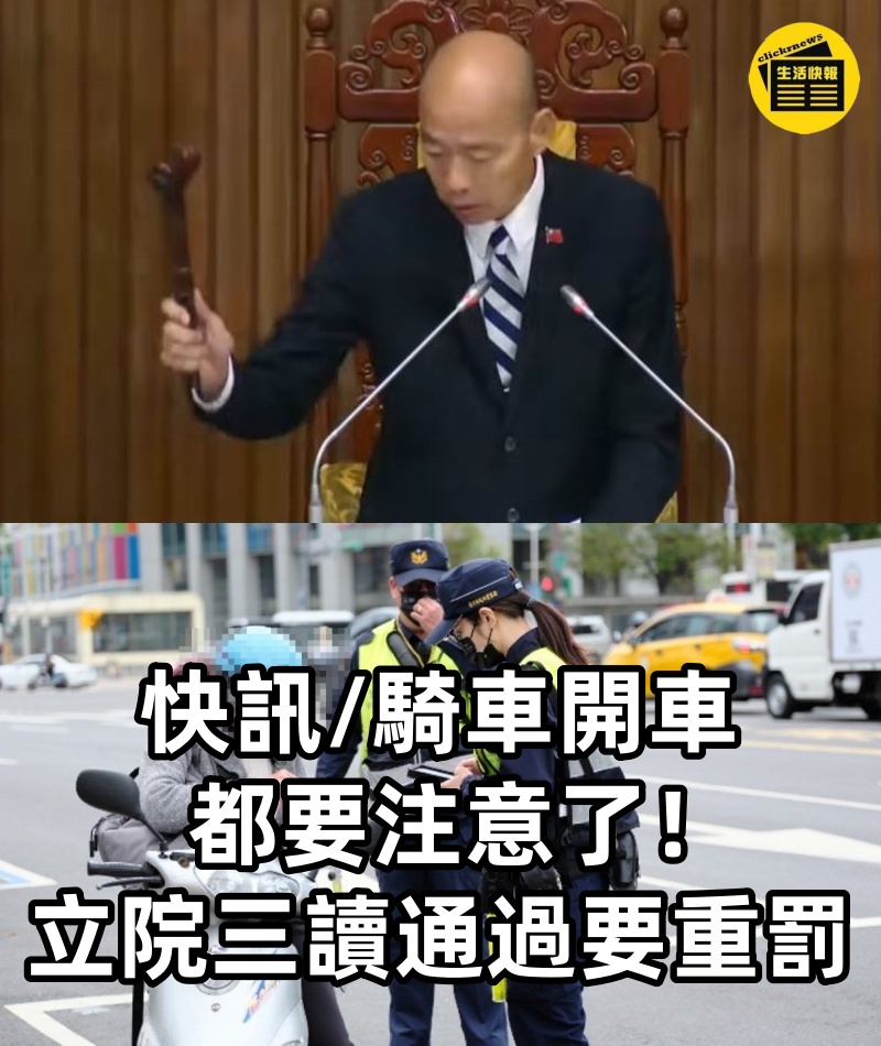 快訊/騎車開車都要注意了!立院三讀通過要重罰
