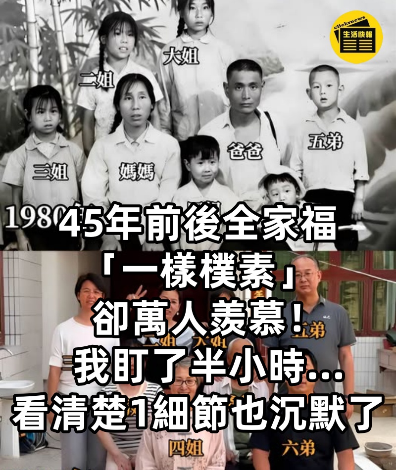 45年前後全家福「一樣樸素」卻萬人羨慕!我盯了半小時…看清楚「1細節」也沉默了