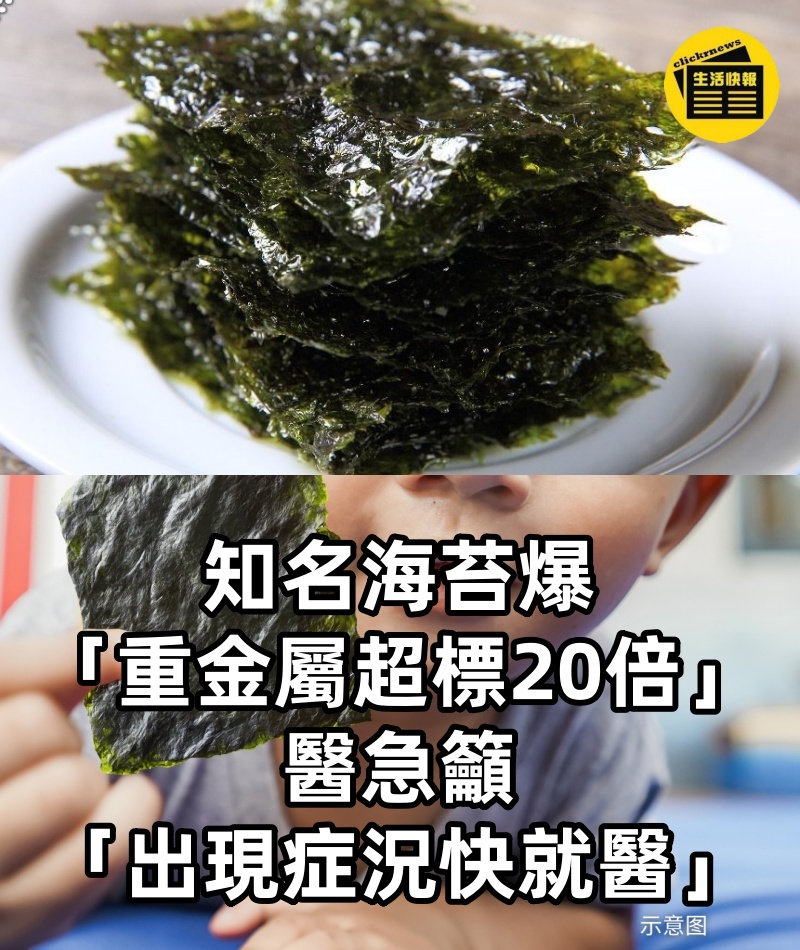 知名海苔爆「重金屬超標20倍」!醫急籲「出現症況快就醫」