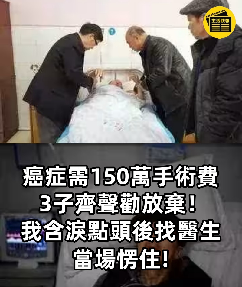 癌症需150萬手術費,3子齊聲勸放棄!我含淚點頭後找醫生,當場愣住!