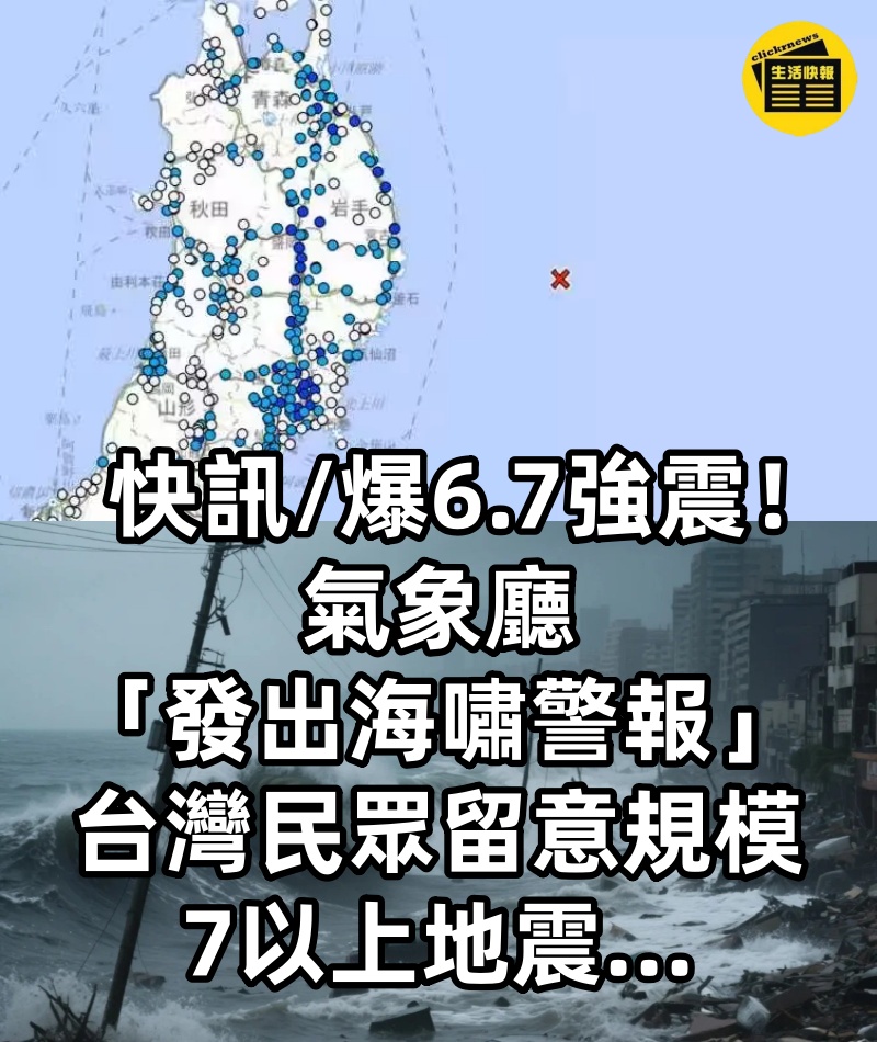 快訊/爆6.7強震!氣象廳「發出海嘯警報」:台灣民眾留意規模7以上地震...