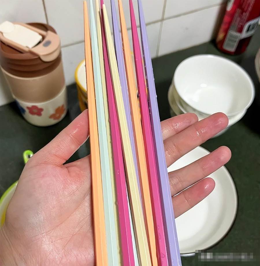 現在很多家庭選筷子,會喜歡選一些價格便宜的,就比如這種彩色塑料筷子。