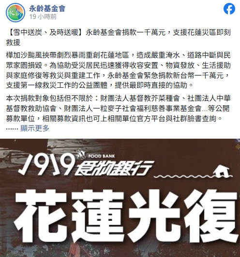 這份即時的援助在網路上獲得廣大迴響,許多網友紛紛表達感謝之意:「郭董每次看到台灣遇到災難,總是第一時間伸出援手!」、「永齡基金會的及時雨真的很重要」、「感謝郭董對台灣的愛心」、「永齡基金會的善行令人敬佩」、「台灣有郭董真好,謝謝您的愛心付出」。這些暖心的回應,展現出台灣社會團結互助的美好價值。