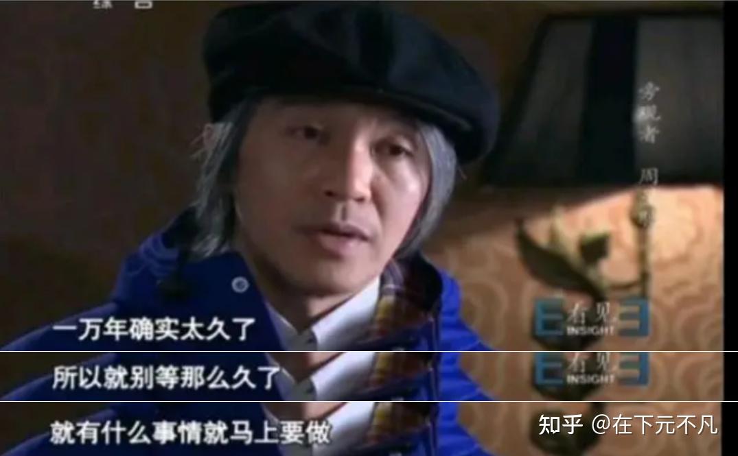 在柴靜的一檔採訪節目中,周星馳說:“一萬年確實太久了,所以就別等那麼久了,有什麼事情就馬上要做……”