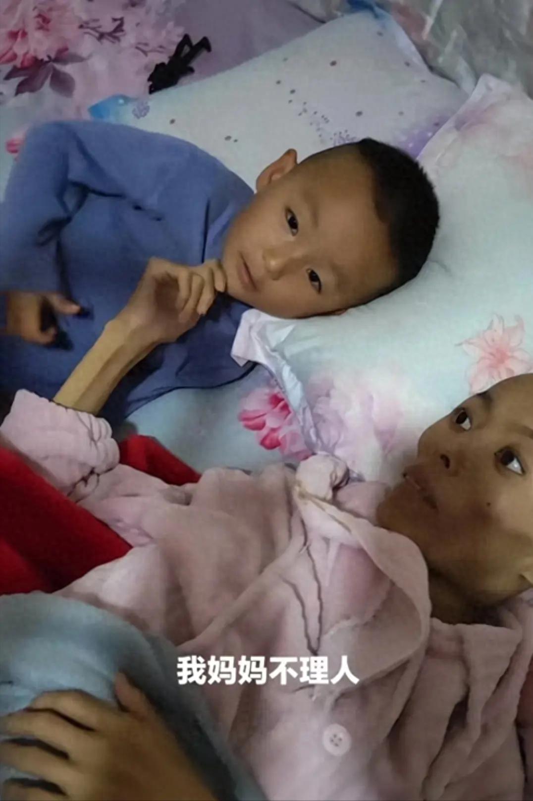 而最戳心的,莫過於那個小男孩。孩子很懂事,見母親身體虛弱,還在努力配合她互動。可是,最近的這段影片裡,小男孩喊「媽媽」,卻得不到回應。孩子的那句「我媽媽不理人」 ,簡簡單單幾字,卻重如千鈞,像一根細針扎進心裡,讓人無比心酸。父親看著孩子,不得不鼓勵他說,媽媽不會不理人,依舊讓他多叫幾次。最後,媽媽終於微弱地回應了,讓孩子去睡覺。她想撫摸兒子的臉,可是手抬不起來了,是小男孩主動把媽媽的手放在了自己臉上。