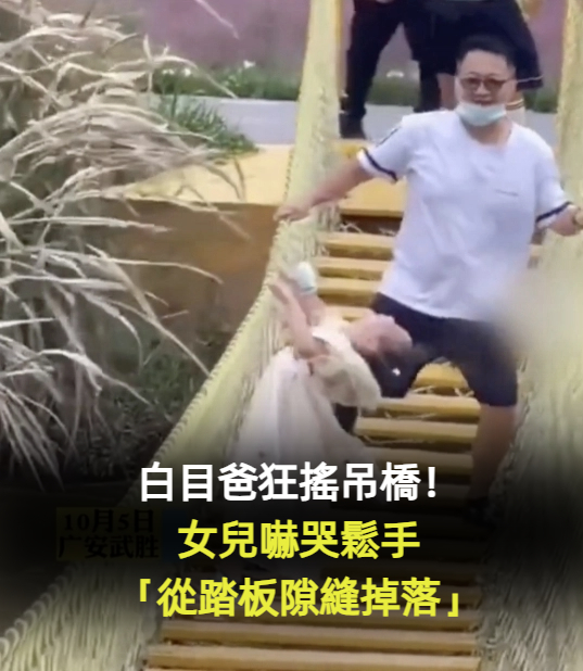 白目爸狂搖吊橋!女兒嚇哭鬆手「從踏板隙縫跌落」 「媽媽的反應」萬人狂罵:不配當父母