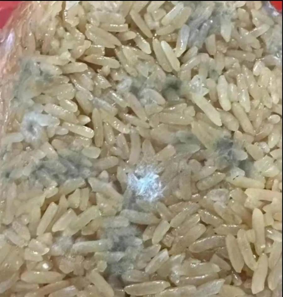 這種發霉的大米肯定地說,千萬不要吃。正確的做法是,大米一旦開封,不能放在過熱、過潮的地方,還是需要陰涼、干燥、通風保存。