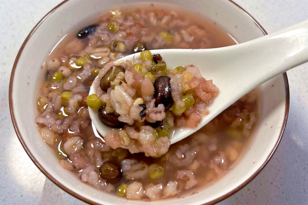 2. 紅小豆、黑豆和花生比較難煮,最好提前用清水浸泡2小時以上,如果時間緊,至少泡1小時也能縮短熬煮時間。干百合也稍微泡軟。