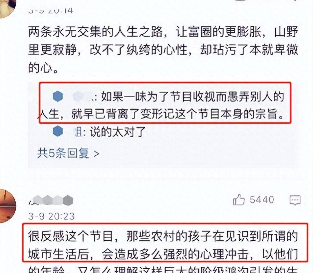 但有觀眾發現,參與者的變化常是表面化,而節目故意製造劇情,來自城市的參賽者靠節目迅速出名,而貧困地區的孩子成為了背景板。