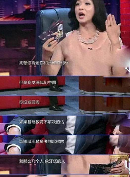 最為人稱道的是她對娛樂圈弊端的直言不諱,當潘石屹因在國外慷慨解囊而對國內罕有捐款時,金星質問他為何不關心國內,當成龍因拋棄親生女兒於不顧時,她毫不留情地批評他沒有責任感。