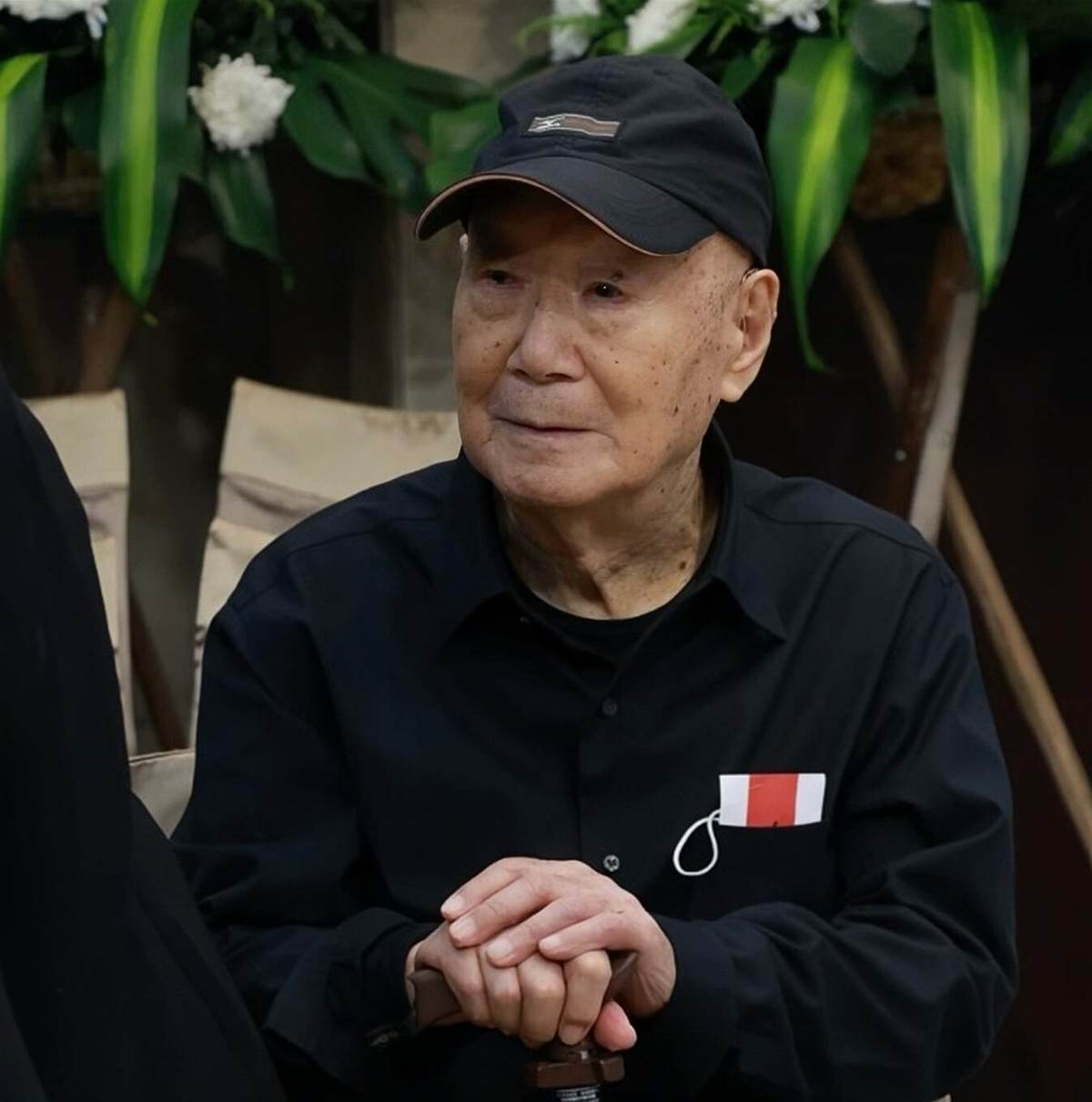 只見他滿臉的哀傷,沒有多說一句話。在三個女兒的陪伴下,安安靜靜地坐在靈堂中間。