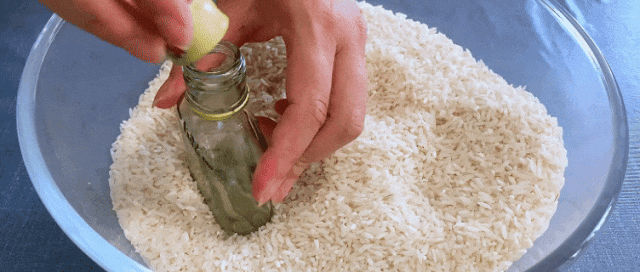 準備一小瓶喝剩的白酒(普通白酒就行),放入米缸當中。不要擰緊瓶蓋,豎直插進米缸里,讓酒香慢慢揮發出來。