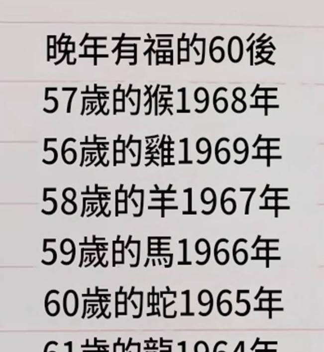 1965-1969年出生的60後,恭喜!把這篇轉給家人,一起「福」到晚年!