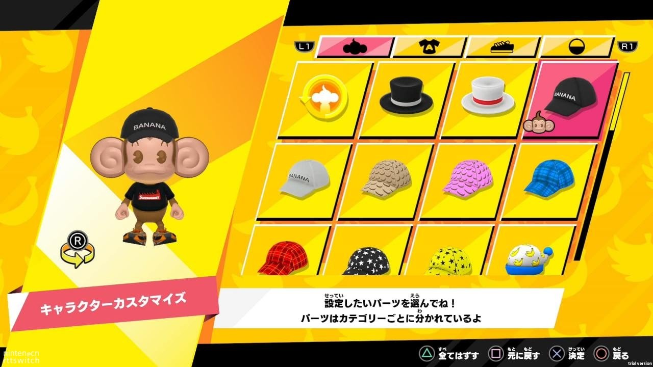 從超過100種的自定義部件中,替換自己喜歡的部件的功能。換裝的小猴子在主線遊戲和派對遊戲中均可使用。搭配出只屬於自己的小猴子,然後挑戰遊戲吧!