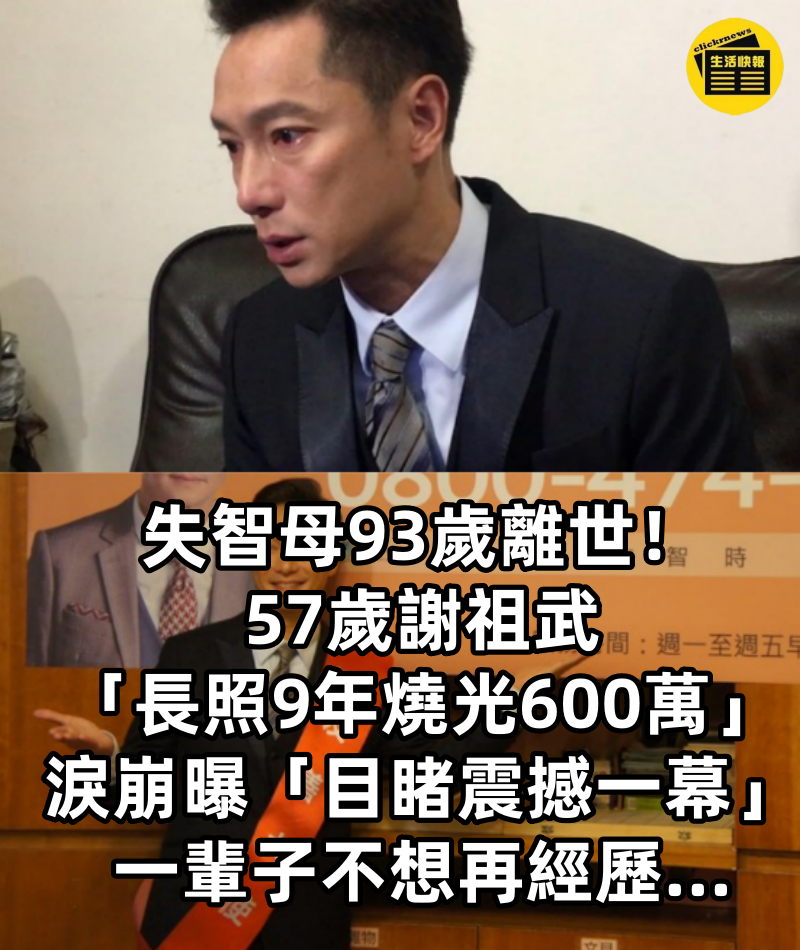 失智母93歲離世!57歲謝祖武「長照9年燒光600萬」 淚崩曝「目睹震撼一幕」:一輩子不想再經歷...