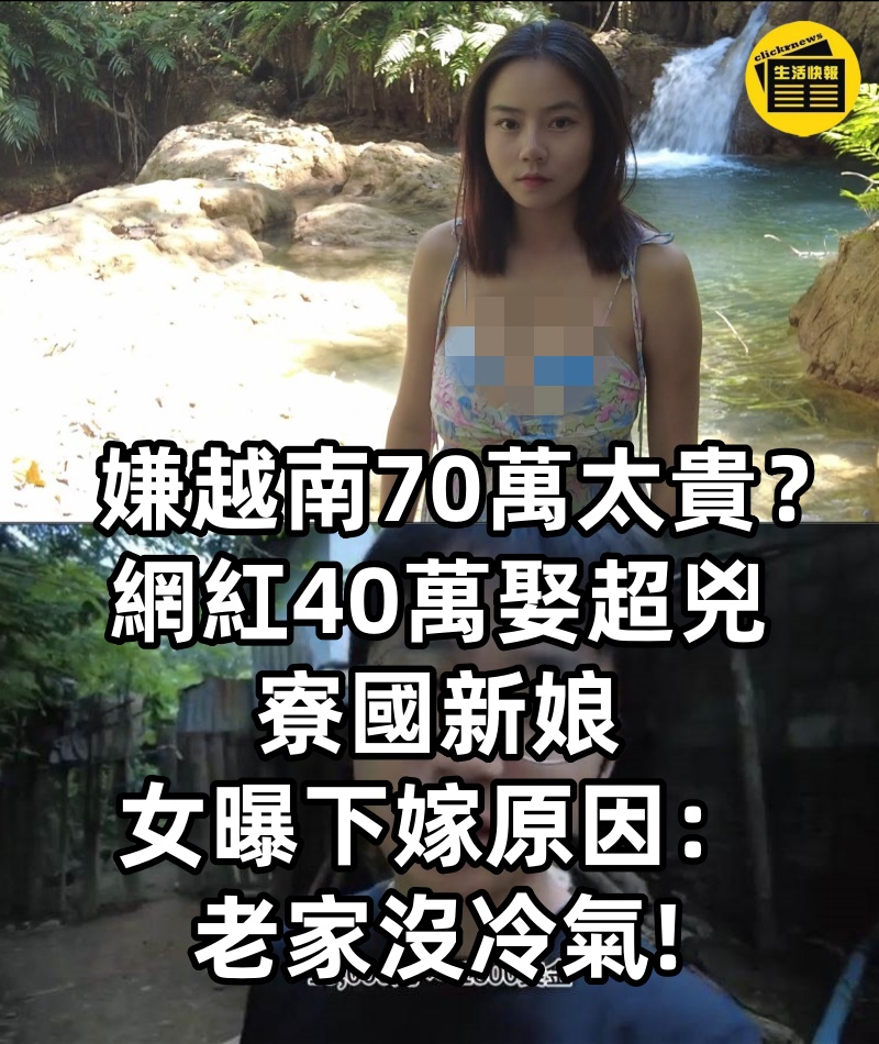 嫌越南70萬太貴?網紅40萬娶超兇寮國新娘 女曝下嫁原因:老家沒冷氣