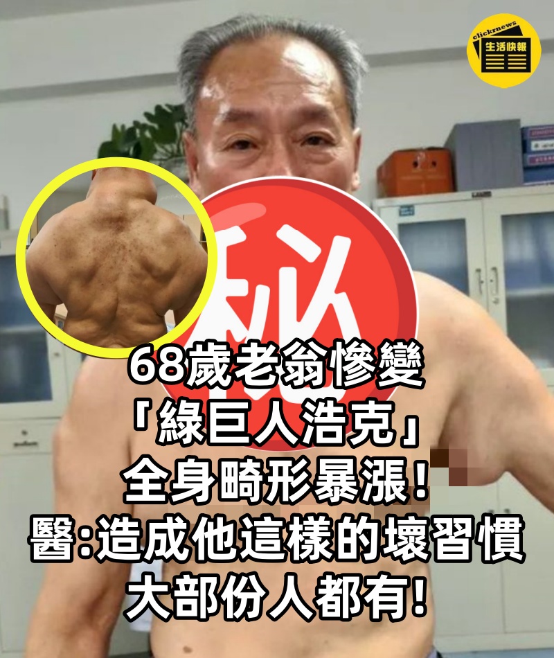 68歲老翁慘變「綠巨人浩克」全身畸形暴漲!醫生警告「造成他這樣的壞習慣」大部份人都有