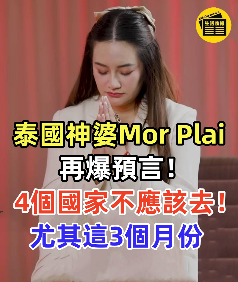 1/4 泰國神婆Mor Plai再爆預言!4個國家不應該去:尤其這3個月份 泰國著名靈媒Mor Plai再度轉達了閻羅王的警示,並重申2026年真正不該去的國家其實有4個,尤其是在年中時段更不該去! 而關於那可怕的流行病,Mor Plai表示傳播率極大,而泰國政府將任由其擴散,甚至
