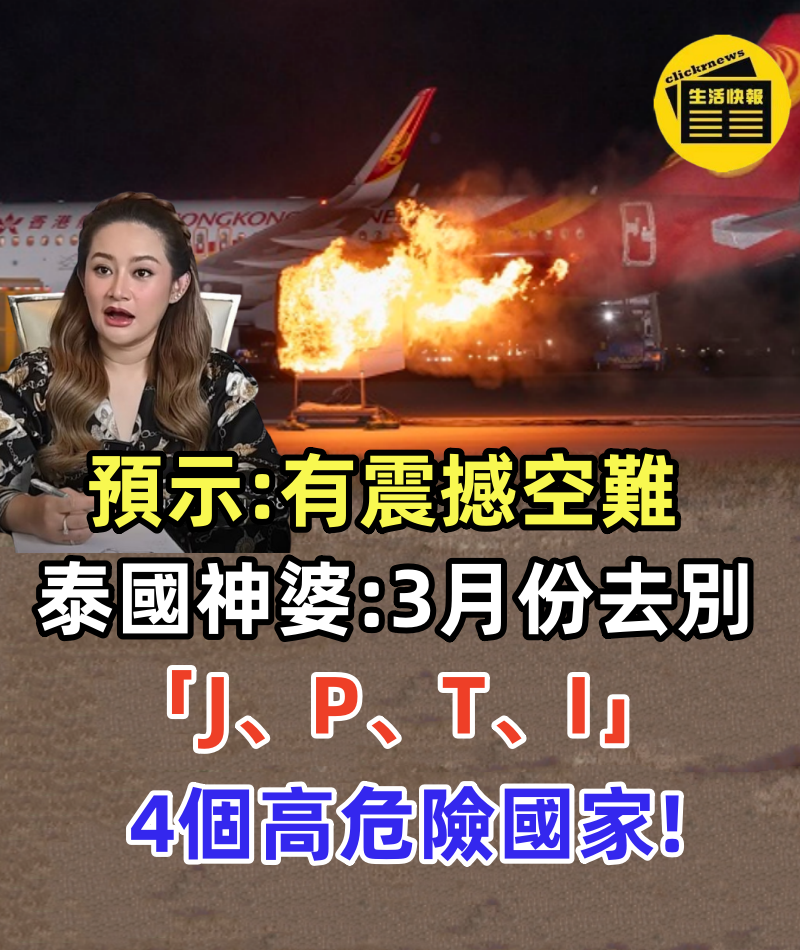 1/5 再拋2026年警訊!!! 泰國神婆示警「恐爆嚴重空難」點名上半年「別去H、J、T旅遊」 2026年才剛開始,全球命理界就陷入高度警戒狀態。 多位預言家不約而同示警,認為今年碰上「火馬年」,整體情勢恐怕比去年更加險峻。 2/5 其中,曾