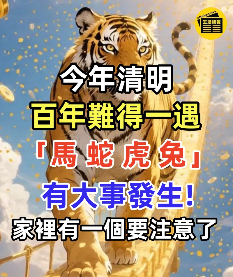 今年清明百年難得一遇 「屬馬,屬蛇,屬虎,鼠兔」有大事發生!!! 家裡有一個要注意了