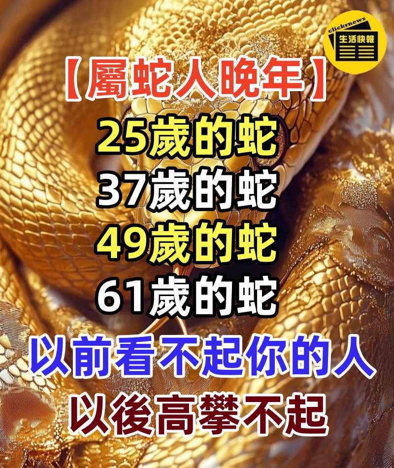 25歲的蛇,37歲的蛇,49歲的蛇,61歲的蛇 【屬蛇人晚年】 以前看不起你的人, 以後高攀不起