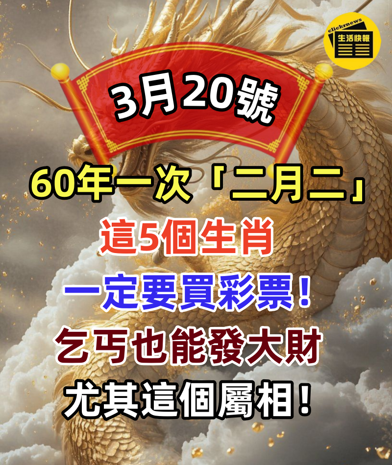 60年一次,就在3月20號「二月二」, 這5個生肖一定要買彩票,乞丐也能發大財, 尤其這個屬相