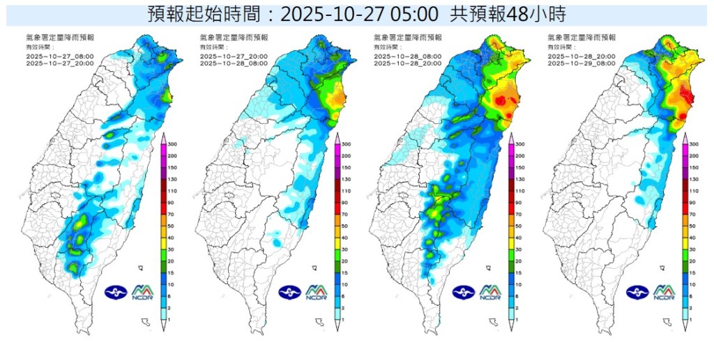 專家特別提醒,上述四個縣市不論是平地或山區都可能出現降雨,預計降雨強度會介於大雨到豪雨等級。至於中南部地區,則是在午後山區較容易出現零星陣雨。