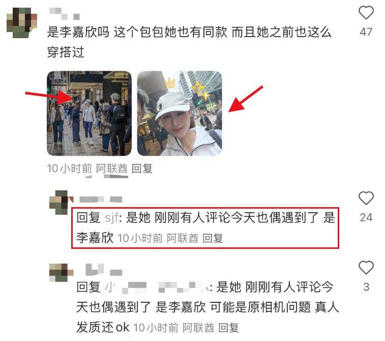 在路人的視角中,她戴著一頂白色帽子,上半身是一件同色系的外套,下半身是一件藍色的牛仔褲。