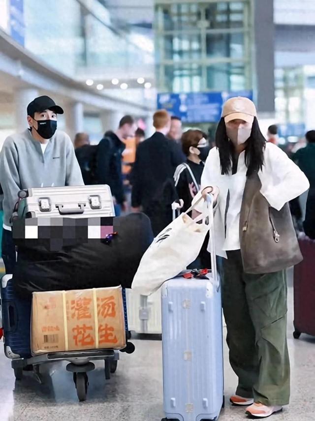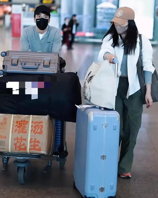 網友手機鏡頭裡那對推著行李車的男女,差點讓人以為是剛談戀愛的年輕戀人——直到鴨舌帽檐下露出高圓圓標誌性的側臉弧度,群眾才反應過來:「嚯!趙又廷這哥們又帶著國民女神出來撒狗糧了!」