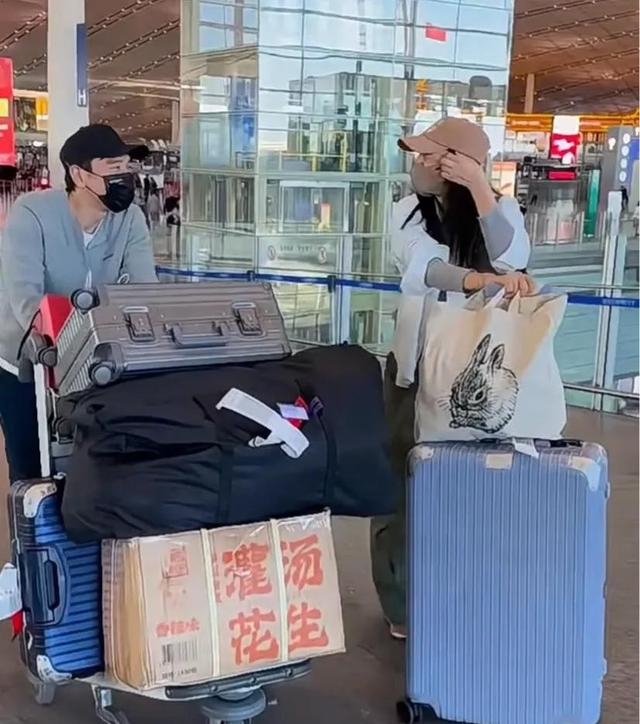 要說這小倆口是真有意思,結婚都十多年了,在機場這種明星必爭之地硬是沒整出半點花活兒。