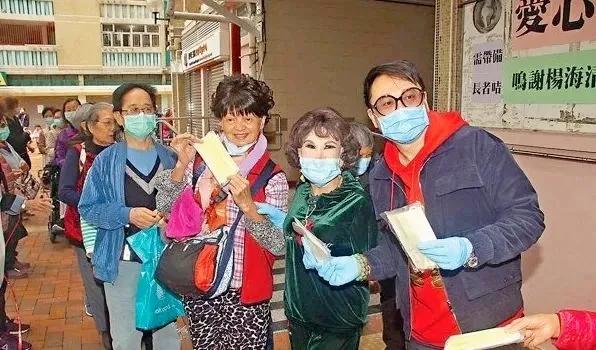 疫情期間,她又上街給老人派發口罩,周潤發的姐姐就領到過: