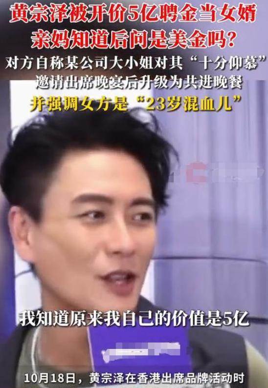 這段子被黃宗澤講得繪聲繪色,還自稱「5億女婿」。