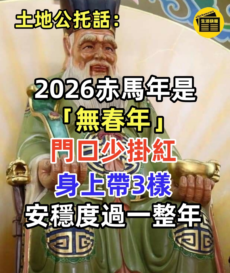 土地公托話:2026赤馬年是「無春年」,門口少掛紅,身上帶3樣,安穩度過一整年