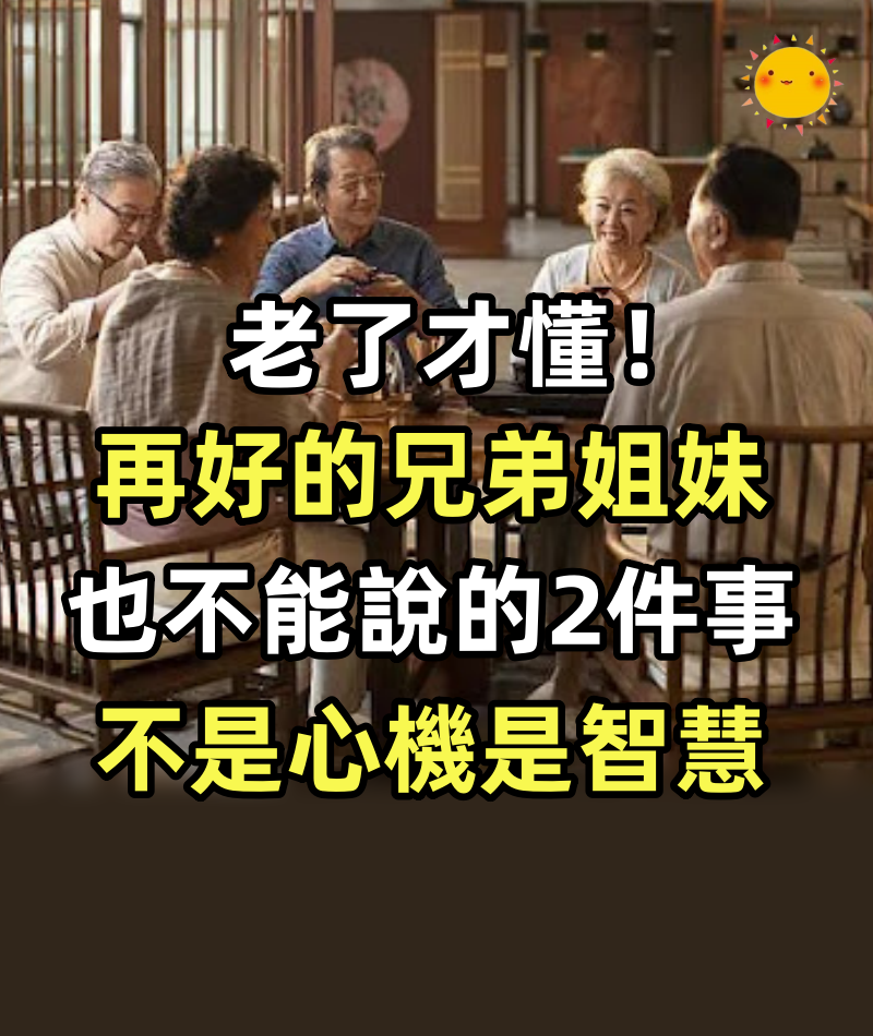 老了才懂!再好的兄弟姐妹也不能說的「2件事」:不是心機是智慧